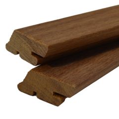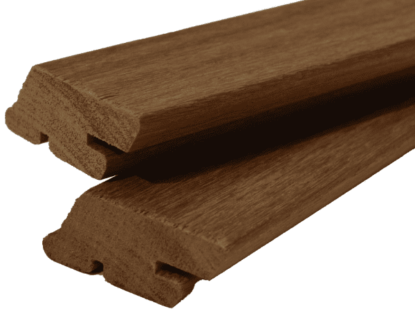 Edle Rhombusleiste aus Cumaru KD (kammergetrocknet) mit glatter, geschliffener Sichtseite und egalisierter Rückseite. Besonders formstabil, widerstandsfähig und ideal für langlebige, elegante Fassaden.