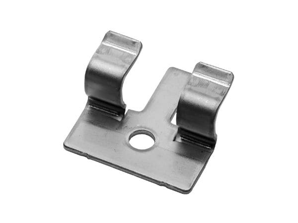 Hochwertiger Befestigungsclip aus Edelstahl zur verdeckten Montage von Hartholz-Rhombusleisten. Ermöglicht eine saubere, optisch ansprechende Fassade mit sicherem Halt und dauerhafter Beständigkeit.