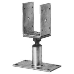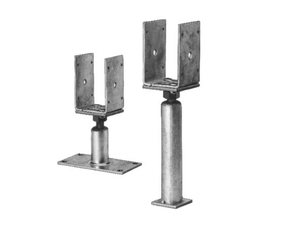 Stabiler Pfostenanker aus feuerverzinktem Stahl zur sicheren Befestigung von Holzpfosten auf festen Untergründen. Mit verstellbarer Höhe und Gabelbreite für flexible Einsatzmöglichkeiten im Terrassen- und Gartenbau.