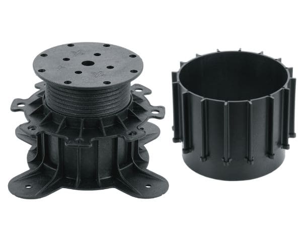 Höhenverstellbarer Stellfuß für Terrassenunterkonstruktionen. Stabil, einfach zu montieren und ideal zur präzisen Höhenausrichtung. Frost- und hitzebeständig für den dauerhaften Einsatz im Außenbereich.