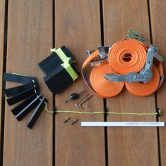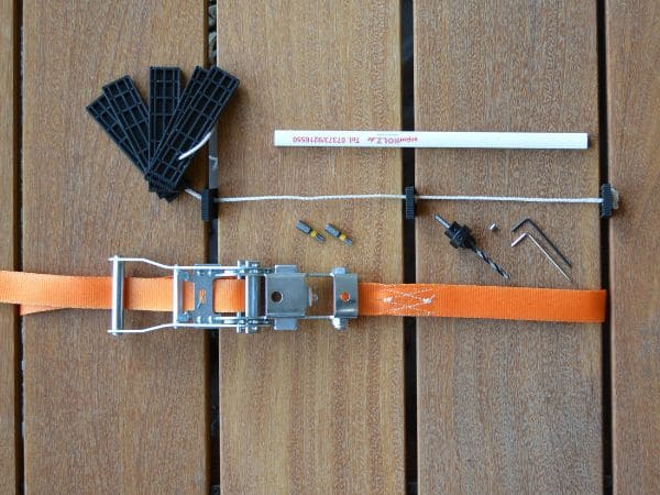 Starker Spanngurt zur sicheren Fixierung und Ausrichtung von Terrassendielen während der Montage. Sorgt für präzise Fugen und festen Halt.