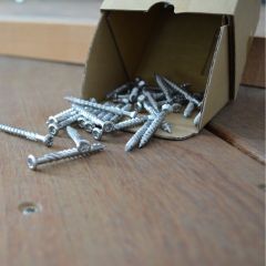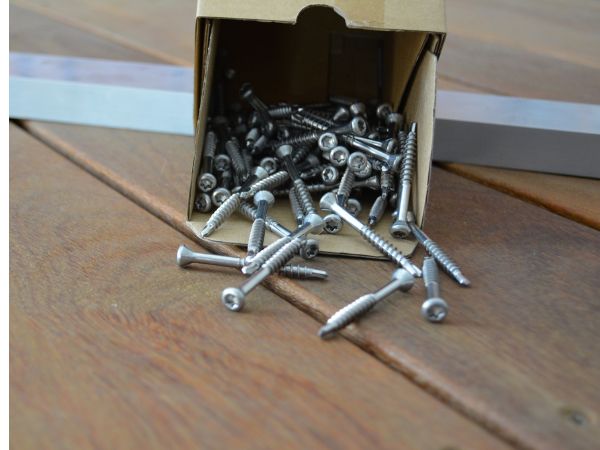 Spezialschraube aus Edelstahl mit Bohrspitze zur sichtbaren Befestigung von Terrassendielen auf Aluminium-Unterkonstruktionen. Garantiert schnellen, sicheren Halt und eine saubere Optik.